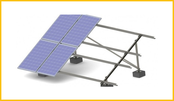 Ballast structures are a flat roof mounting construction for a large, levelled surface. This structure is relatively easy to install and can be pre-assembled for quick PV panel mounting. The set-up uses the roof as base. The two support structures are of different lengths so that we can have optimum inclination for capturing maximum sunlight. The angle of inclination is decided based upon your latitude. The number of ballast structures depends on your roof load limit. In case your roof does not have the capacity for direct mounting of anchor fastener, we use concrete blocks as the hold for the anchor fastener.