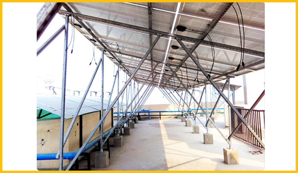 Installing solar system on rooftops uses up the space and leaves very little room. Worry not! We have a way for you to have your cake and eat it too. You can observe that in the above rooftop installation. The panels can be fixed at a height of 10 to 20 feet depending on your requirement. This essentially leaves you with a nice little roof of panels beneath which you can hold informal functions.